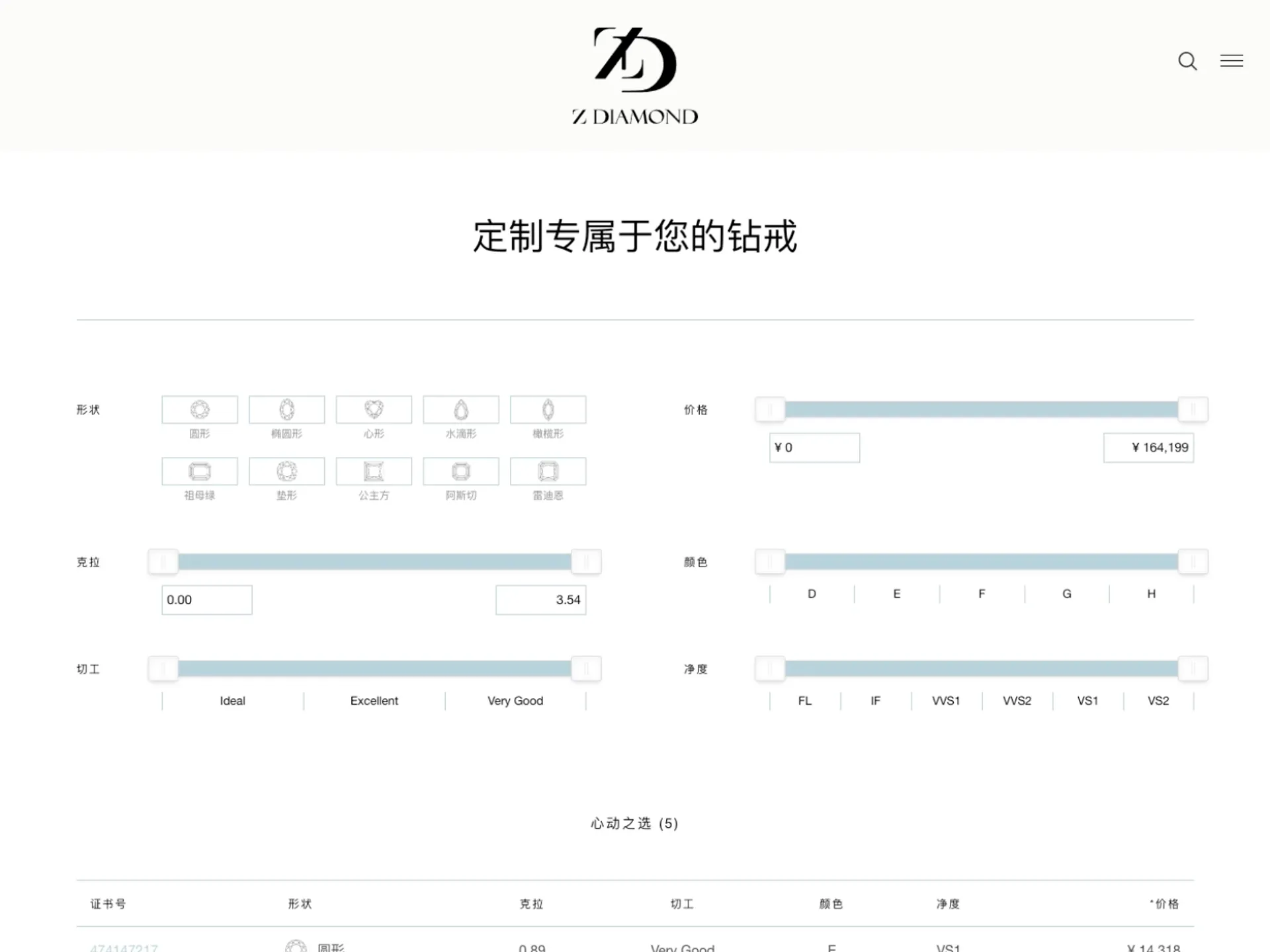 构建专属钻石数据库, 支持按品质、颜色、切工等维度筛选。